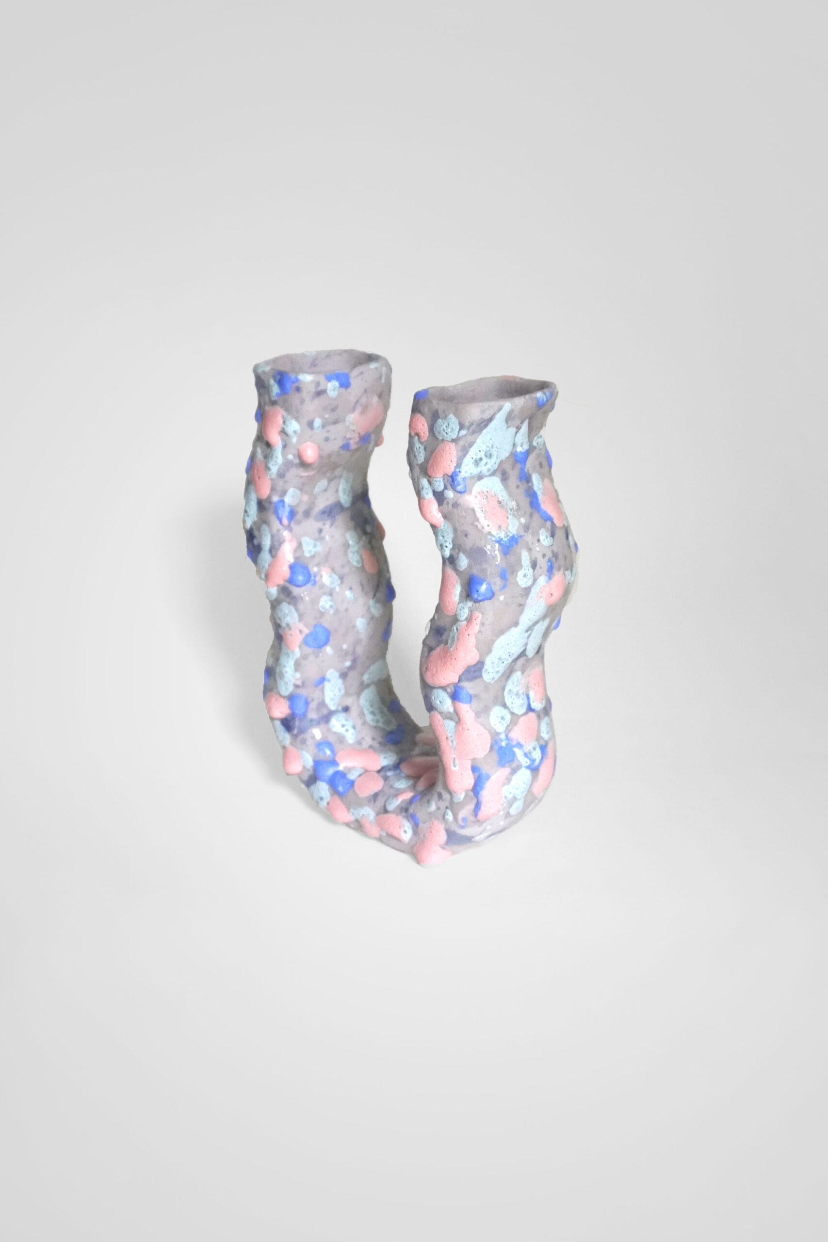 The Duo MAGMA vase is a singular creation born from an experimental process that merges ceramic glazes with reactive compounds and multiple layered firings. This meticulous technique results in a variety of finishes and textures, each imparting a distinct and irreplaceable character to the piece.
