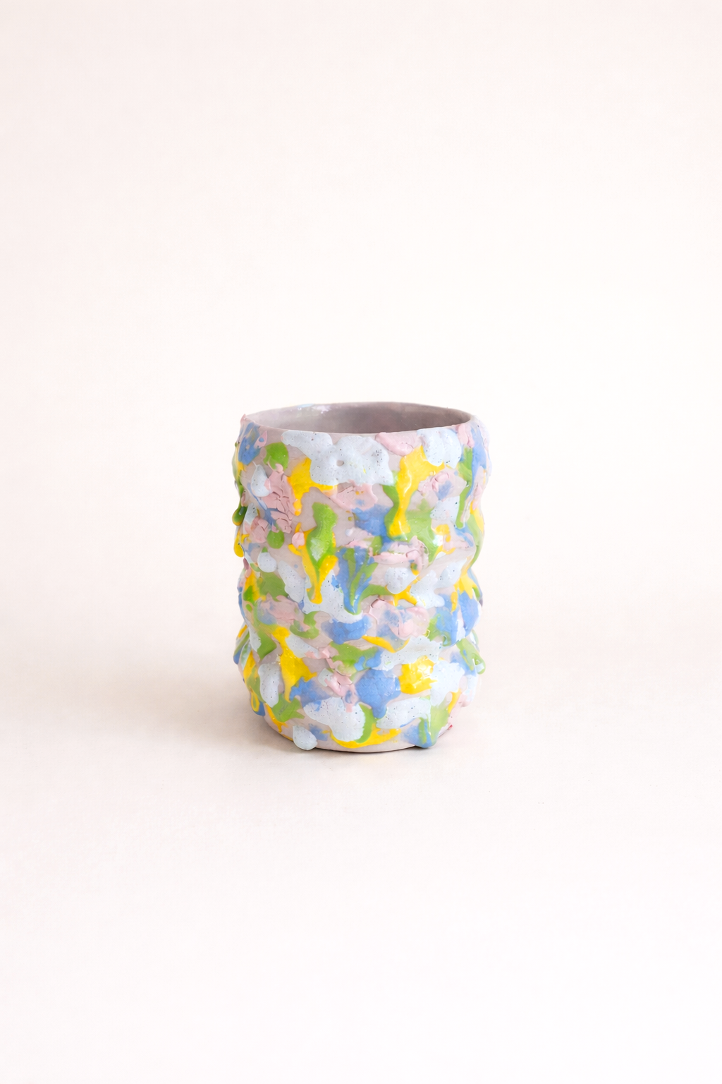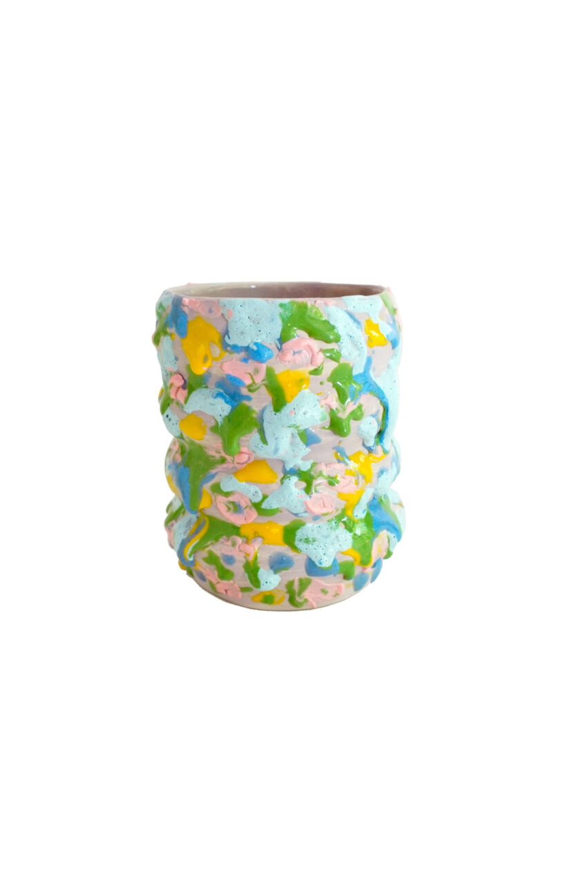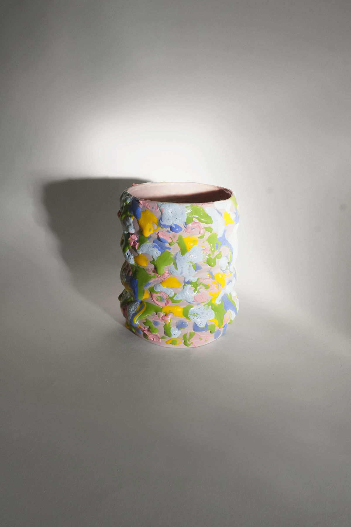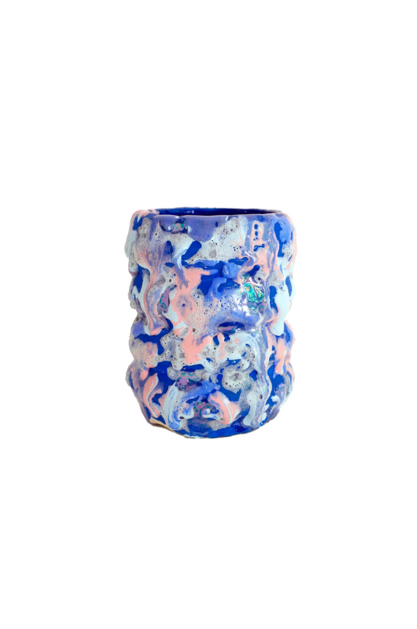 Cada pieza es única y cuenta con aplicaciones de diferentes esmaltes modificados, engobes y laca holográfica sectorizada.