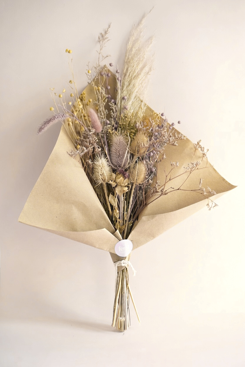 Los ramos de flores secas son de fácil mantenimiento, no requieren agua y son ideales por su durabilidad.
